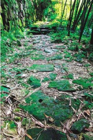 李大哥像是对小石坑很有感情,他俯下身子,轻轻地把小石坑上的浮土和树叶拂去,“这是‘拐子窝’。”原来,背茶人背负百多斤重的茶包,途中歇息只能用丁拐柱撑在茶包背架之下,让拐子的末端杵于石上,在一代又一代背夫一次又一次偶然的重复之中,与石头厮磨而留下了永恒烙印!不是真正看到一块石板上就有七八个小坑,再好的想象力也不足以估计背茶人的艰辛。“从县城到这里,短短4公里,背夫的行程却是整整一天!”李大哥边讲述边感叹,是啊,这条“小路”,真可以说是世界上最难行走的货运通道,一路看去,山青青,水迢迢,苍岩接天,幽壑垂岚,正是风光无限。