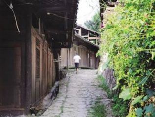 刚过天全县城还不到五公里的样子,眼前出现一座月亮湾大桥,不远处,古道尽头的半山上,可见一处风貌原始的袖珍古村,看路上的指示牌标的是青龙乡红星村,对于茶马古道,我内心充满敬畏好奇,于是停车步上斜坡,一块标有“甘溪坡茶马古道遗址”的石碑矗立于村子东首,似是向人们提示踏入此界便到了茶马古道。