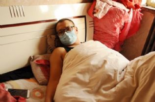 现在只能躺在床上。不敢动作太大,怕出血,一出血就容易感染,一感染就要住院。“上个月去了三趟医院,家人都吓坏了。”“现在还是肚子疼。”