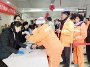 正月十四—正月十六,清徐农商银行开展了上元佳节“品元宵送温馨”惠民活动,在各网点煮制“太原老鼠窟精品元宵”,供来往群众免费品尝,同时,该行积极践行社会公益,向全县900余名医务人员、交通警察、环卫工人赠送了元宵。图为清源支行正在向环卫工发放元宵。
