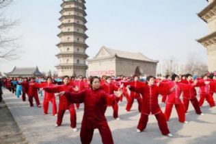 元宵节期间,县杨式太极拳协会开展了形式多样的展示展演活动。2月25日下午,他们组队参加了由太原双塔寺管委会和山西六一传媒主办的第二届“太极迎春”活动。3月1日下午,在东湖广场举行了第三届(2018)百人太极欢庆元宵节活动。图为杨氏太极拳协会在太原双塔寺展演。