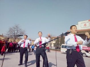 正月里来好时光,家家户户拜年忙。宣传贯彻十九大,走乡串镇演出忙。露天演出不畏寒,节目生动民称赞。精准扶贫民实惠,百姓生活达小康。富民政策真不赖,康庄道上大步迈。撸起袖子加油干,中国梦啊早实现。