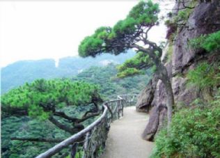 三清山最令人惊奇的是西海岸,又称西海栈道。它有一条海拔高1600米,长3700米,世界罕见的高空栈道。宽1.3米至2米的钢筋混疑土栈道,犹如一条飘带环绕山腰,将一座座山峰连成一体。一边是悬崖绝壁,一边是幽深的峡谷。漫步于栈道,迎面扑来的是那迷人的景色。极目远眺,峰峦叠嶂,群山连绵,无限风光,就像放电影一样,一幕幕地展现在眼前。俯视观看,峡谷幽深,满目苍翠,气象万千。沿途主要景点有:送子观音、双松探海、玉女献花、猴王观宝、葫芦岛……