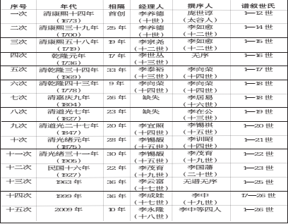 集义李氏家族,始祖李仁甫自明初迁至集义以来,至清康熙十四年,共304年,繁衍至十二世,人口数百,但没有家谱,却出现了喜不庆,忧不吊,有无不相恤,一家人如见路人,甚至强凌弱、众暴寡、富欺贫、智藐愚、相殴相讼现象。族长李可荣约众老在祖宗图下,感慨地说:“如不整顿,家族会由盛而衰”。他倡议创修家谱,制订族规。从此,集义李氏家谱便创立了。从创至今已有336年,共修了家谱15次。平均22年修一次。