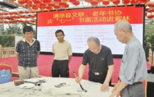 县文联、县老年书协邀请省、市文联共赴紫林醋业举行了庆“七一”书画活动