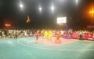 “紫林杯”三人篮球赛在东湖体育场灯光球场开幕