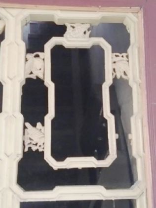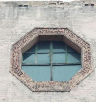 二楼,东墙置窗户五个,南墙置窗户一个;明亮豁朗。若在楼院外从东往西看去,便可欣赏窗口的美感:五个窗户相互呼应,正中为六边形,意谓六合同春;两边对称两个为八边形,意谓星光灿烂,家庭和睦;边窗为圆形,意谓圆圆满满。周边砖雕梅兰松竹、祥云等饰纹。
