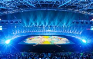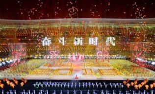晚8时45分,红灯笼体育场内4万余名观众刚刚目睹了一场精彩的入场仪式,随着主持人“请欣赏文体展演《奋斗新时代》”的话音刚落,一台现代时尚“灯光秀”炫目开场。