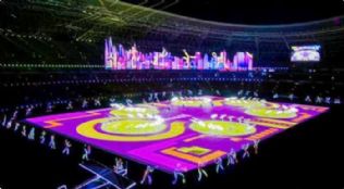 8000平方米的地面舞台为主要表演区间,同时又是一块巨大的全景投影屏幕,三维图像可与表演者展开互动。地面、舞台、空中三维互动,产生令人震撼的演出效果,打造出立体视觉盛宴。