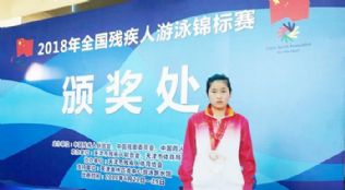 2018年全国残疾人游泳锦标赛于6月21日至29日在天津奥林匹克游泳跳水馆举行。我县孟封镇阎家营村年仅17岁的视障残疾姑娘郑杰桐,经过奋力拼搏,一举夺得女子49分、4x100米混合泳接力第一名;女子S12、100米蝶泳第二名;女子SM12、100米和SM12、200米第三名的好成绩,斩获“一金两银两铜”,为山西代表队再立新功,为山西父老乡亲增光添彩。