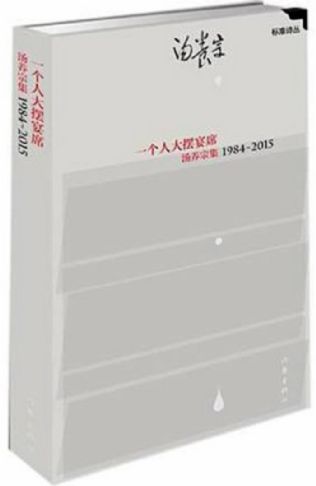 《一个人大摆宴席:汤养宗集1984——2015》是“标准诗丛”第三辑之一种,全书遴选著名诗人汤养宗不同时期代表作品,共分四卷,包括三卷诗“雕花的身体”“寄往天堂的十一封家书”“拉大提琴的女人”、一卷文“一个逻辑怀疑者在一座山上的左想右想”。诗卷收录诗人不同时期、不同风格的代表作,如《孤愤书》《雕花的身体》《一个人大摆宴席》《万古愁》《拇指铐》等;文卷则收录了不同时期有关诗歌的文章,包括《诗歌写纸条》、《归顺之诗》、《我一直在故乡写诗》等。