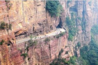 在我们下榻的清雅仙居酒店用过中餐后,便进入景区。乘景区环保车沿着蜿蜒的盘山公路,先游览绝壁长廊——郭亮洞。驱车半个多小时,直达郭亮村头。现在叙述看似轻巧,实际当时坐在车子内还真提心吊胆。因为我们一直是在陡峭的悬崖边行驶,满目皆是刀切般的峭壁。郭亮村现有83户人家,共329人,是一个美丽的自然小山村。下车后才看清楚,全村就悬挂在海拔1700米的高高的悬崖上,四周山势独特,潭深溪长,村子的主干道几乎都分布在悬崖边上。我真担心晚上出行,会一不小心,就失足跌下万丈深渊。
