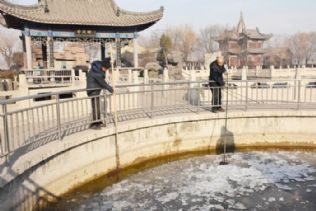 为防止冬季冰面对环湖堤岸造成挤压,以保障堤岸安全,延长堤岸使用寿命,怡心园工作人员每日都要对东湖西岸和“鱼池”进行凿冰清理。