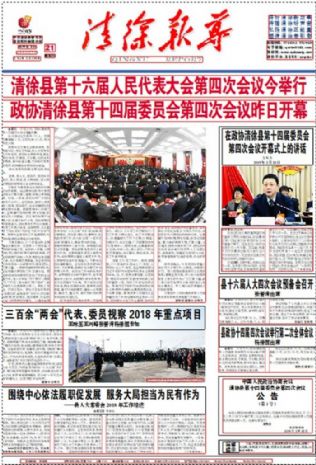 “两会”引发热切关注,《清徐报导》和“新时代、新作为、新篇章”重点项目建设展板成亮点。