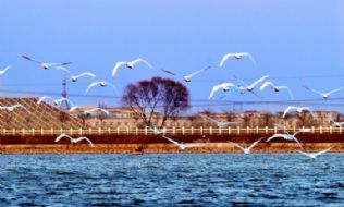 美丽清徐喜迎“回头客”数百天鹅再栖清泉湖