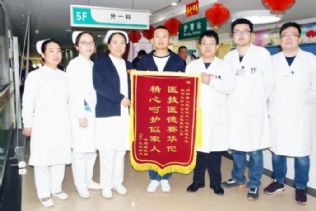 本报讯4月8日的上午,春寒料峭,然而县医院外一科却处处洋溢着浓浓的暖意,一位病人家属紧紧握住主治医师徐晋斌和麻醉师马建宏的手不停地表达着感激之情。他们是在该院治愈出院的患者何巧转的家属,为感谢医护人员仁心仁术、无微不至的照顾,专程上门致谢,并赠送了一面写有“医术医德赛华佗精心呵护似家人”的锦旗。