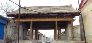 大常村民一定是热爱生活的。从精心镌刻出自己喜欢的砖雕图案中,就显现着村民的憧憬。北向左侧八字墙虽下部漫漶泯灭,却可看出砖雕“松鹤延年”图,右侧八字墙不复存在。南向,八字墙均为“五福捧寿”图。悬山顶脊为“琴棋书画”图。大额枋上描金彩绘的戏曲造型和吉祥典故图案,虽年深日久轮廓模糊,却仍散发出几分古色和执着。
