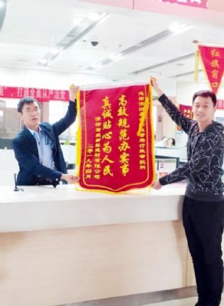 近日,清徐君威新新型建材有限公司专程将写着“高效规范办实事真诚贴心为人民”的锦旗送到县市场监督管理局行政审批科,对行政审批科工作人员为企业提供真诚、热情、高效、快捷的服务表示衷心感谢。