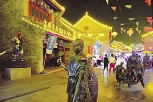 崇文街环绕在定州署府周围。街道两边全是模样大同小异的商铺,清一色木雕花窗、粉墙青砖、油漆彩画、牌匾高悬、红灯高挂。类似的“仿古一条街”,近些年全国各地涌现出不少,连点缀古街的“铜人”也大同小异,无非都是些旧风俗、老手艺之类,如剃头匠、磨刀人、卖糖葫芦的老汉、唱曲的年轻女子……基本上全属引车卖浆者流,古旧的质感,透着苍苍岁月的颜色。