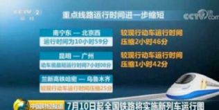 据了解,7月10日零时起,全国铁路将实施新的列车运行图暨暑期运行图。调图后,全国铁路安排图定旅客列车4477对,其中直通列车1669对,动车组列车3310对,另安排动车组高峰线列车460.5对,根据客流需要启动。