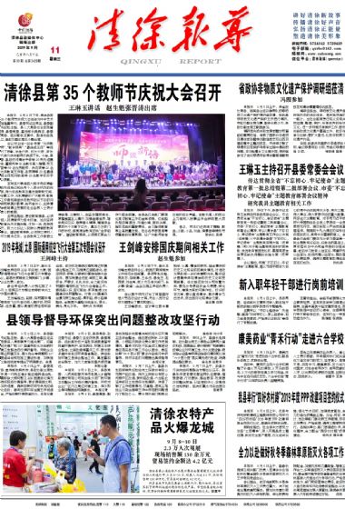 本报讯9月9日下午,清徐县第35个教师节庆祝大会在徐沟中学艺术馆隆重举行。县委书记王琳玉,县委副...
