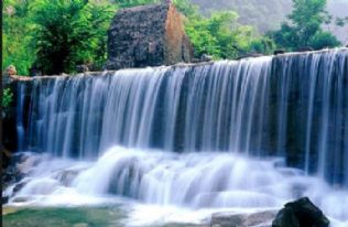 离着好远,就能隐隐约约听到一阵阵轰鸣声,转过几道石头湾,瀑布就惊现在了人们的面前。远远望去,就好像一条闪着银光的缎带,镶嵌在绝壁之上,耀眼醒目。慢慢靠近它,轰鸣声越来越大,震耳的声响如同千军万马一般。瀑布积蓄了所有的能量,从崖顶倾泻而下,撞在周围的岩石上,飞花溅玉,流光溢彩。那些细小的水珠,洒在游人身上,折射在阳光下,整个一片好像笼罩在湿蒙蒙的水雾当中。