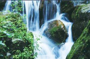 这儿的溪水率真活泼、畅快奔放。一场雨淋湿了山岩,绿树丛草挽着手,迎接淅淅沥沥的雨,它们吮吸够了,贮藏满了,富余的雨水就畅快地沿着山体崖壁直冲而下。坚硬的花岗岩一点也不吝啬,它喜欢倾听溪水从它的眼睛边儿、眉毛上、胳膊肘等处流下来,汇聚成溪,自由歌唱。