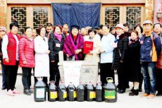 11月28日,清徐爱心互助志愿者团队张美丽、孟彩萍、陈通爱、乔巧仙、孟晓湘及爱心人士王亮生、牛瑞平等为太原市云华爱心护理院送去200斤老陈醋、50斤豆面等爱心物资,并与全院的老人和残疾患者及医护人员、管理人员进行联欢。