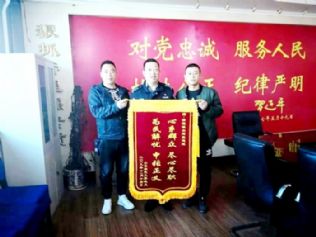 近日,山东籍农民工苏长义为清源派出所民警送来写有“心系群众尽心尽职为民解忧申张正义”的锦旗,表达对民警们帮助其讨薪成功的感激之情。