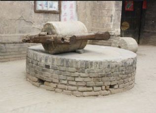 还有一种水磨、水碾,那是我八九岁在晋祠住在亲戚家时和同龄孩子玩耍时看到的,结构和上面说的碾磨有不一样的地方,水磨是扇转,一根铁长杆通到地下坑内和扇轮连接,坑内砌有进水口和出水口,水进去冲到底轮上就转,这样就能磨面了,碾得结构原理差不多和磨相似,上面不是碾盘,而是碾槽,碾滚是两个同样大的扁圆形石滚,两滚中间连接一根铁碾杆,碾杆中间用一根长约五六尺方二寸铁杆通至地坑和底轮连接就成了。