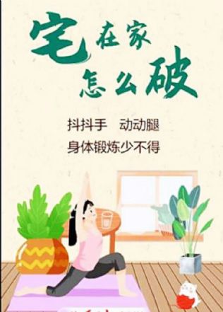 坚持锻炼身体也是宅家的必修课题。每当起床之后,先去卫生间清洗手脸。用具有消毒作用的肥皂上下、左右、手指、手背、手腕认真搓洗;再用自来水冲洗干净。然后或坐或站,先蹾脚跟一百次。再用“一拍、二抓、三揉”的办法,对膝关节拍一百次、抓一百次、揉一百次。然后站起来,练习单腿站立。开始时,由于腿部的筋骨萎缩,站立不稳,手扶桌沿站立。开始时只能站一分钟,慢慢地坚持不懈地站立,终于能站立起来了。从站一分钟,到现在可以站立十分钟以上了。将上面的三种运动做完之后,顿时觉得腿部轻松起来了。过去清早总觉得腿脚不灵活的情况,得到了改善。腿部不觉得沉重了,走起路来,轻松了。