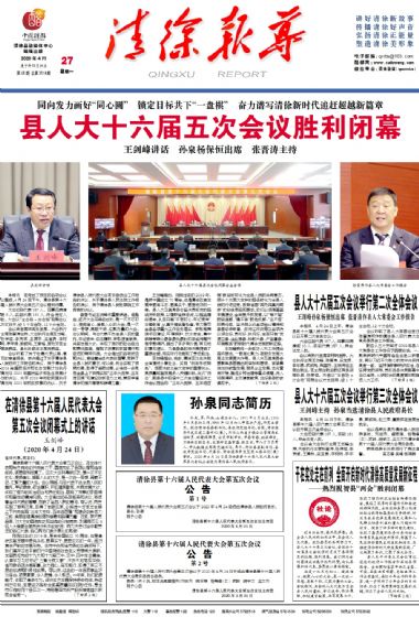 清徐县第十六届人民代表大会第五次会议于2020年4月24日补选出清徐县第十六届人民代表大会常务委...
