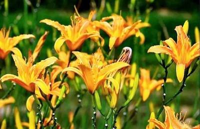 为了种好黄花,整个暑假父亲领着我们天天泡在黄花丛中。金针最早零星开花于农历四月底五月初,其时产量很低,每天仅可采摘1馍馍口袋;及至芒种时节,果实逐渐增多,这时,正赶上当地繁重忙碌的夏麦收割碾打,采摘的任务就全部落到我和年幼的妹妹身上;盼到了学校放暑假的日子,黄花的采摘旺季正好来临。