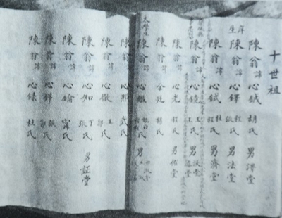 目前在县志中能够找到的陈氏家族最早的族人,是四股的陈端。陈端是四股八世祖陈万表的儿子,万历七年(1579年)例贡,任河北易州吏目。陈端之子陈心鉴中万历三十九年(1611年)例贡,陈端弟陈庄,中崇祯元年(1628年)岁贡,曾任河南扶沟知县。