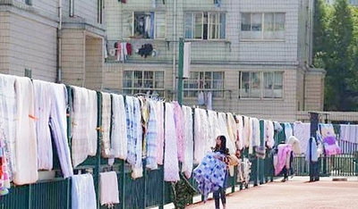 如此画风,在外出求学时,常被我和同学们演绎成“加强版”,想来忍俊不禁。“豆腐块”被子造型,折磨得我们欲哭无泪,故而格外热盼大晴天,用“晒被子”逃避叠被子的煎熬。起床灯一亮,便趿拉着鞋,披着、抱着被子冲向楼下,抢占有限的晾晒空间。跑操归来,竟发现天气是阴的。不管了,晾着吧,不用叠被子便好。