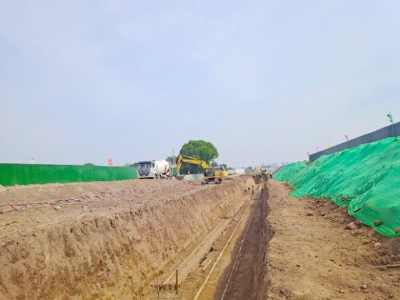 育青路建设工程快速推进,目前正在进行雨污水工程管(沟)槽开挖及垫层浇筑。