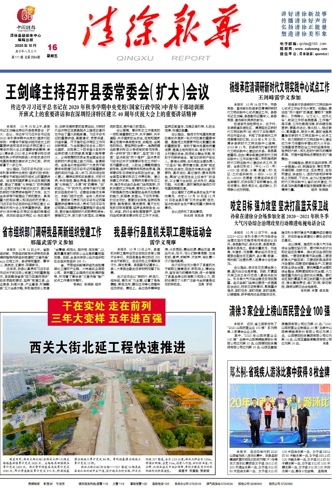 本报讯在近日举行的2020山西省残疾人游泳比赛中,我县孟封镇阎家营村视残女孩郑杰桐(中)夺得本次...