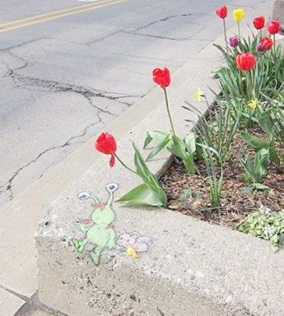 他漫无边际地在街上走着,走累了,便在路边的一个座椅上坐了下来。不经意地,不远处一处破损的路面引起了他的注意,在鳞次栉比的高楼间,这处来不及修补的破损路面格外的突兀,就连急着赶路的行人都不忘躲闪和避让。“这就好像我的梦想,破碎不堪,无人问津。”忽然,一个念头在他的脑海中升起,或许我可以用我手中的粉笔,让这处破损的路面变得漂亮起来。