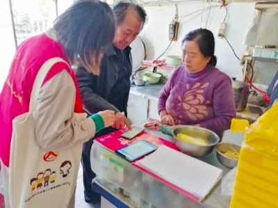 11月1日0时起,全国第七次人口普查进入普查登记阶段,普查员走进千家万户进行电子化信息采集。图为东湖街道迎新社区普查员进行入户登记。