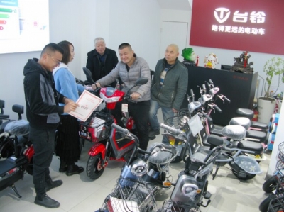 随着“双11”网购节的临近,各大电商纷纷开展优惠促销活动,线下商家也加入“战团”,线上线下齐发力,购销两旺,让众多消费者得到许多实惠。图为顾客在位于文源路中段的台铃电动车专营店选购电动车。