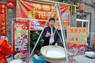 一手抓生产,一手抓营销。线上,村民们通过微信、抖音、快手等软件在网上售卖自家的红薯,全村的红薯不用出门就被人们抢购一空。线下,清德铺元宵入驻太原食品街,村民们着装统一,现场制作,笑迎宾客。