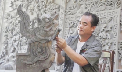 他喜爱砖雕,是受家庭的影响。7岁那年,无意中看到外婆在泥砖上刻画的一幅“狮子滚绣球”图,眼前一亮的他瞬间就痴迷地冒出一个念头,长大后一定要在砖头刻图画。37岁那年,他虔诚登门,拜当地著名砖雕艺人杨宗新先生为师,从传统的烧砖技艺学起,选土、制泥、制模、脱坯、凉坯、入窑、看火、上水、出窑……一步步朝着儿时的梦想迈进。