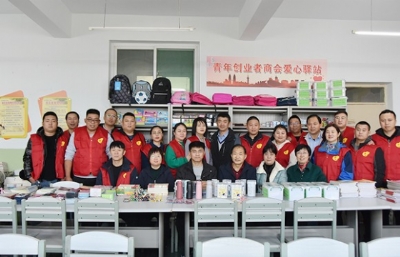 2019年11月27日,第二个“爱心驿站”在柳杜中心小学挂牌,挂牌仪式上,县青创会为学生们送去价值5764元的爱心物品。