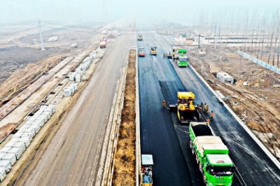 近日,清徐气温骤降,然而各项重点工程施工现场依旧是热火朝天。记者在开南路施工现场看到,部分路段正在进行沥青铺设,人行道砖铺设、道路绿化种植也在同步进行中。