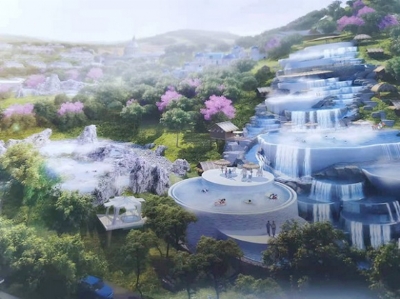 从山上俯瞰,整个庄园十大片区一览无余:一是菲尔蒙酒庄片区,其主要功能是利用加拿大先进的葡萄酒酿造设备和技术,进行葡萄酒生产、存储和销售服务;二是与之配套的葡萄园片区;三是红木家具博物馆和红木家具厂片区,建在泉水叮咚、层林尽染的山谷;四是商业风情片区,设计为英伦和法式两个风格体系,有酒吧、美食、大剧院、婚纱摄影、影视基地等;五是特色民宿片区,满足人们对自然居住环境的要求;六是温泉度假酒店片区,以商务、休闲、度假、观景为主题功能,有“栖于山水,我心悦然”之美感;七是水上休闲娱乐片区,利用山势使温泉水形成高差叠流和飞瀑,打破传统平面泳池设计,极具挑战;八是温泉谷片区,以常年30多度温泉水为资源打造的造型各异的温泉池,让人在花红柳绿、鸟语花香中享受温泉疗养;九是主题观赏片区,即花海片区,又分六小区,有杏花园、油菜园、樱花园、梅花园、向日葵园、薰衣草园,园区有观景台、小木屋等供人小憩;十是校园教育片区,以英伦建筑为主要风格,覆盖从小学到中学的寄宿制私立学校。另外有待开发的还有康养片区,主要为老年人打造自然宜居的康养环境。