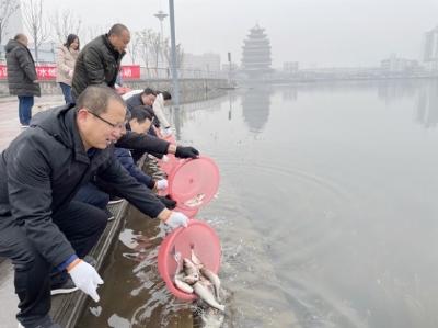 本报讯12月2日上午,市、县两级农业农村部门在东湖水域开展了以“养护水生生物资源,促进生态文明建设”为主题的鱼类增殖放流活动,共计放流≥13cm/尾草鱼种6万尾,≥13cm/尾鲢鳙鱼种10万尾。