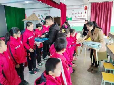 12月14日,公益爱心人士苏瑞强、王峻鲸为集义小学家庭困难青少年送去书包、手套等学习生活用品,在寒冷冬日为孩子们送上一份特殊关爱和暖暖温情。