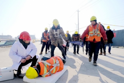 本报讯1月5日上午,清徐经济开发区开发有限公司与标准化厂房施工方山东莱钢施工队伍进行防高空坠落应急演练。