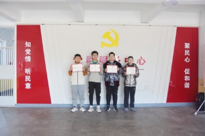 东于镇为疫情期间主动请战值守卡口的32名返乡大学生志愿者颁发了志愿者服务证书