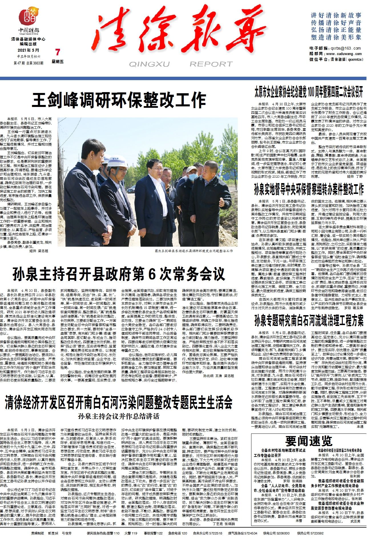 本报讯5月4日,县委副书记、县长、清徐经济开发区党工委书记孙泉主持召开会议,专题研究南白石河流域...